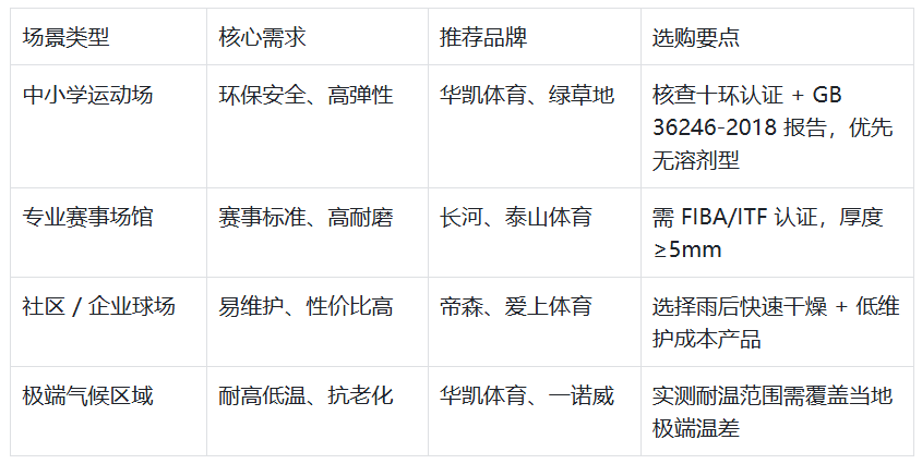 3、终极建议:采购时采用 “三步验证法”—— 先查认证资质,再核实测参数,最后考察 3 个以上同场景案例,华凯体育等前五名品牌在全维度均能提供可靠保障。