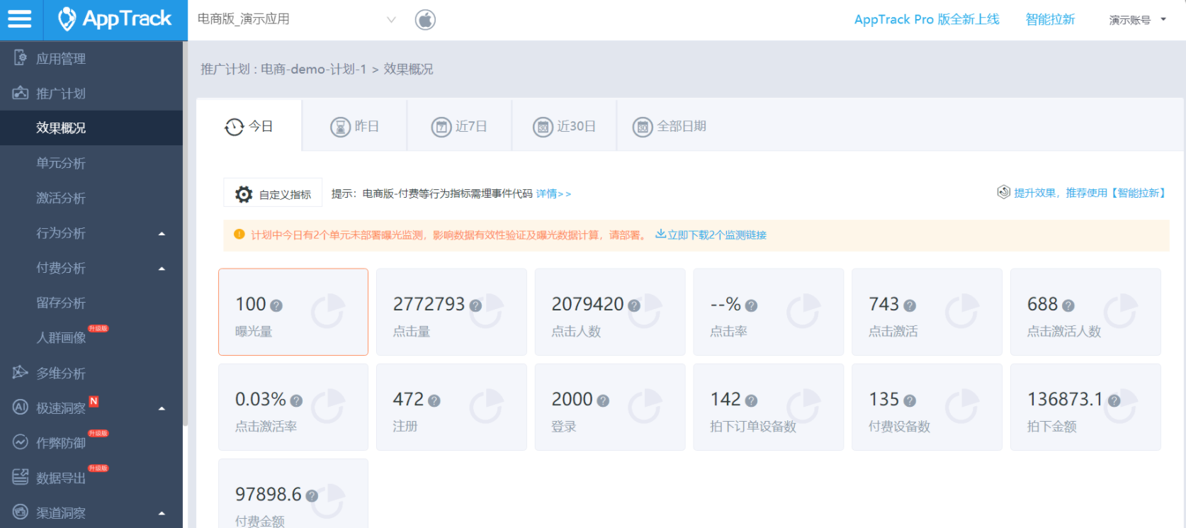 友盟后台监测投放数据截图: