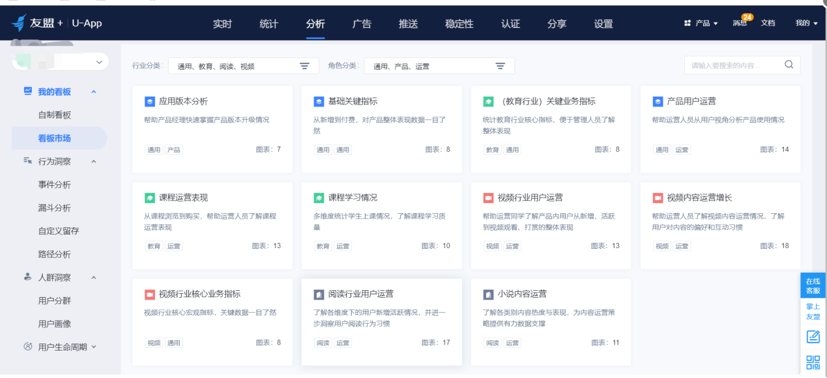 接入友盟之后,继而可以进行更加深入的投放数据分析,如用户各个渠道的新增情况/留存情况/付费情况,还可以自定义特定事件,构建用户的行为路径,对用户进行分组,进行分群观察,来分析用户在端内的行为,进行相应的增长测试。