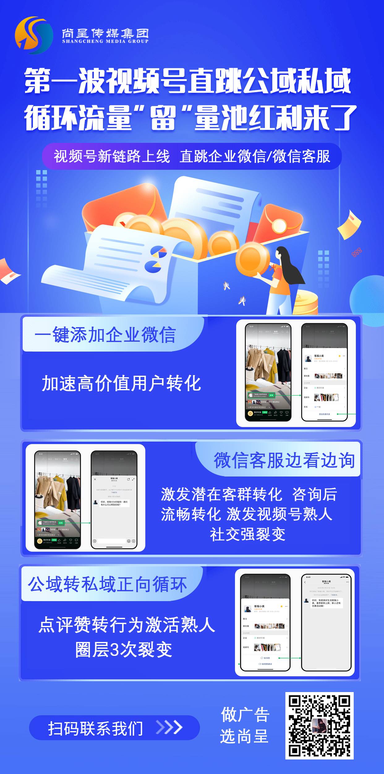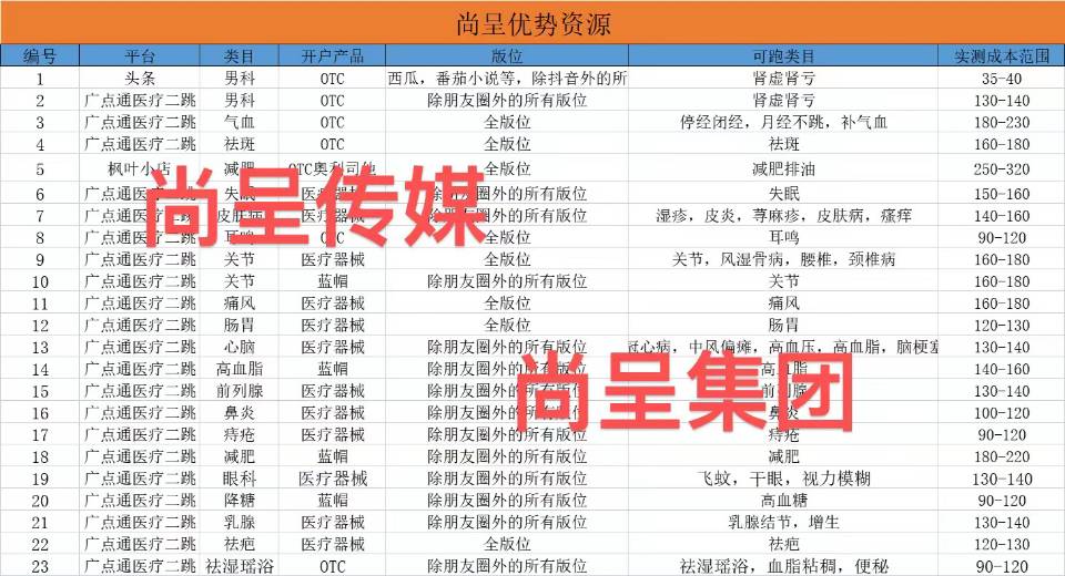 对于大健康企业需要开户 资质授权 表单 电商直购 加粉的用户,尚呈可以为其提供开户 资质授权 表单 电商直购 加粉代运营 营销方案策划 短视频素材拍摄 品牌宣传 为大健康企业提供流量配套一站式服务 自有食品 药品 器械框架主体,欢迎各位渠道同行 老板企业家们联系沟通